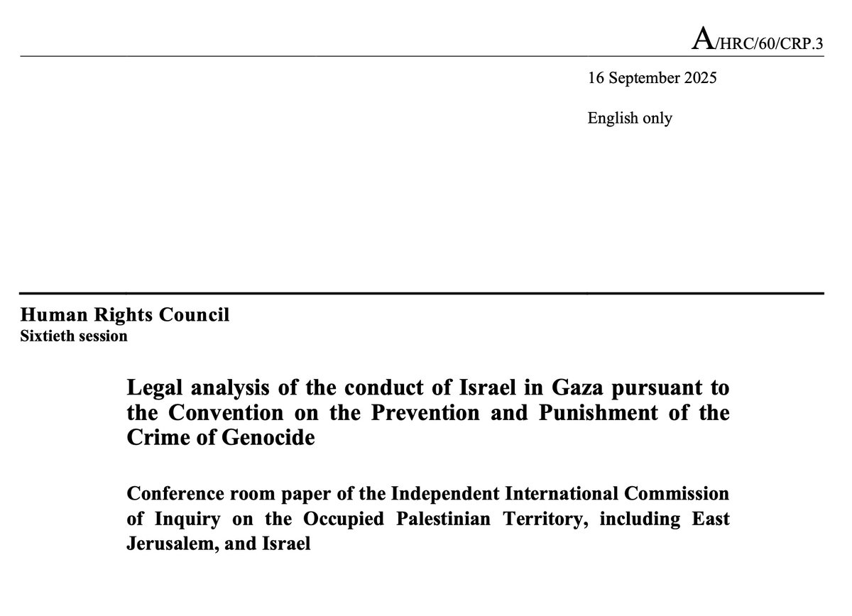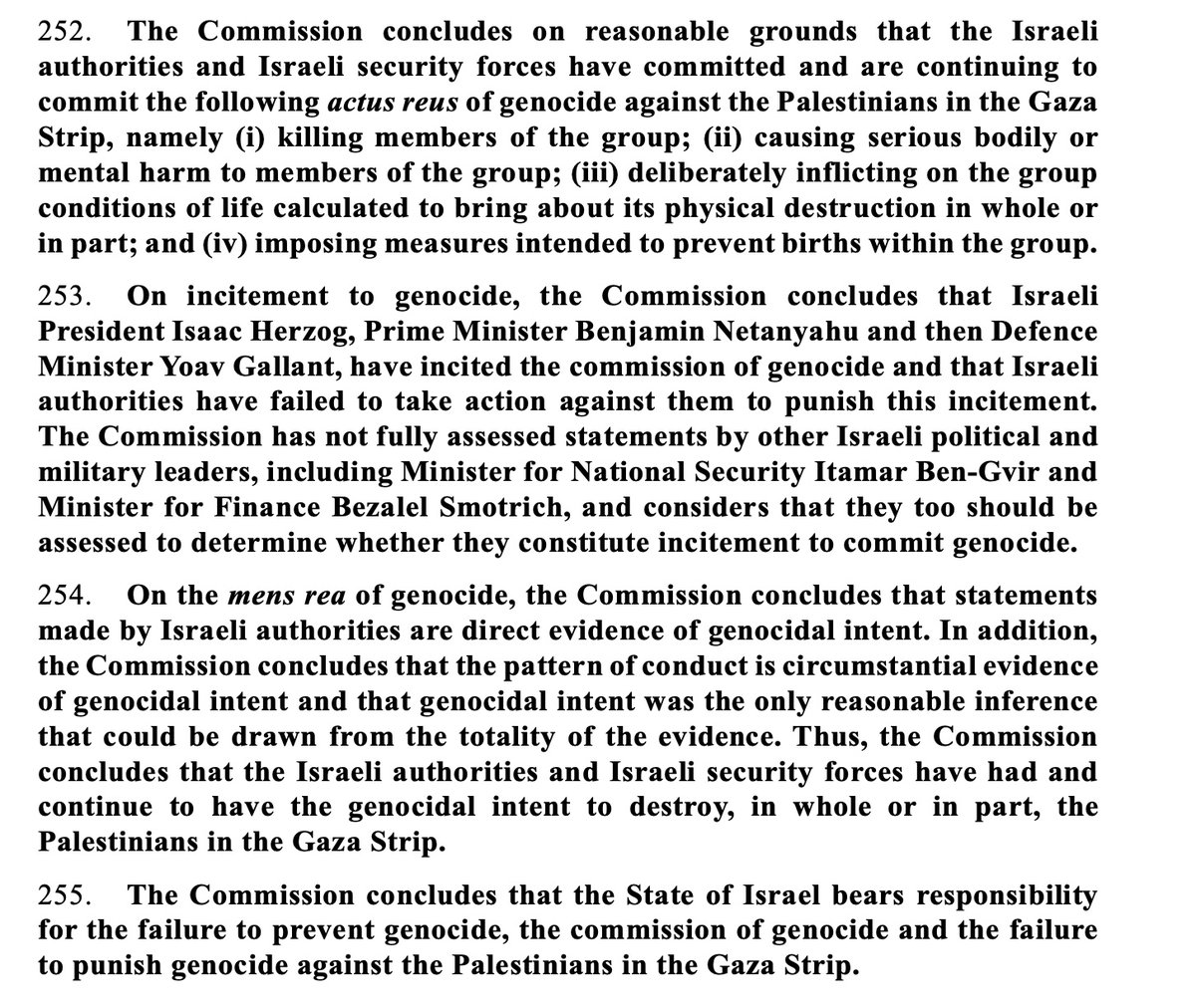 UN Commission of Inquiry concludes on reasonable grounds that Israel have committed and is continuing to commit the following actus reus of genocide against the Palestinians in the Gaza Strip
