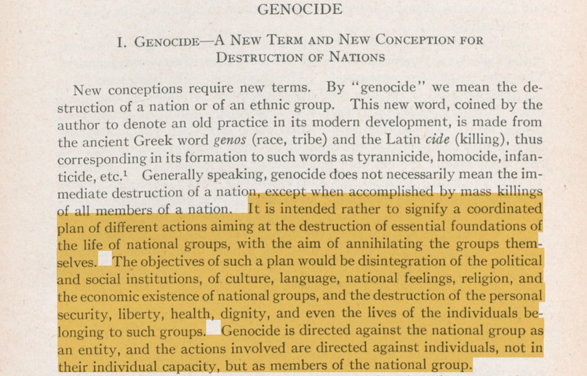 2. The glaring omission from this statement by Sands are the words "occupation" and "coordinated plan"; and thus the recognition of the gross power asymmetry between Israelis and Palestinians. To begin with, here is Lemkin's definition: