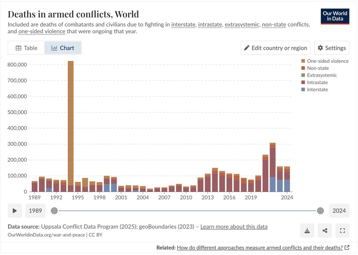 3/ Next lets exclude every year with more than 100,000 combat deaths. That gets rid of 1999, 2013-2017 and 2021 onwards.