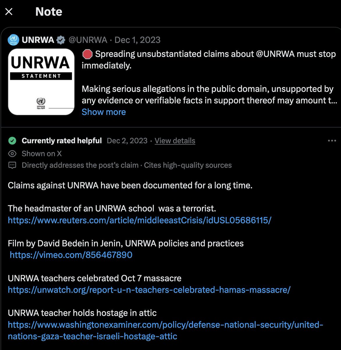 Claims against UNRWA have been documented for a long time.