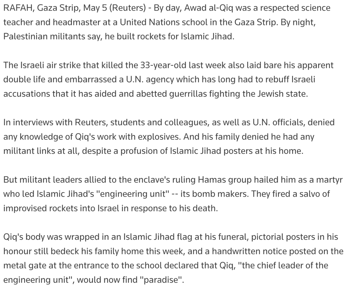 The headmaster of an UNRWA school was a terrorist.