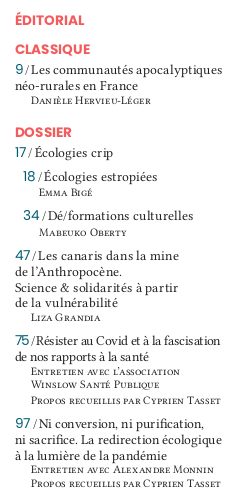 🙌 Après beaucoup de travail de l'un de nos membres (qu'on remercie🙏), Winslow participe à ce dossier "une écologie des corps vulnérables" de la @RevueEcoRev, à travers plusieurs articles :