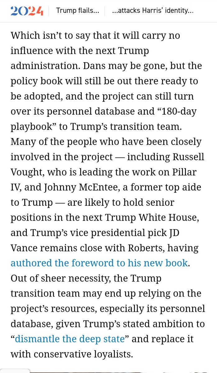 🧵 2/ The headline gives the impression that Project 2025 "fell apart;" but once you read about halfway through, writer @ianwardreports grudgingly admits: