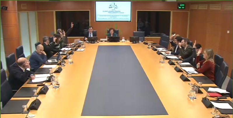 Cuando vamos a explicar la iniciativa, Bildu, PNV, PSOE salen de la sala. Vuelven para votar, y Bildu se abstiene y el Gobierno y PP y VOX votan que no.