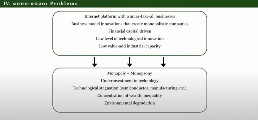 However by 2020 these 3 pillars had "run out of steam" and created a bunch of problems in the Chinese economy. For instance some of the consumer internet firms had become monopolies or monopsonies (only one buyer), and the pillars didn't stimulate actual technological innovation.