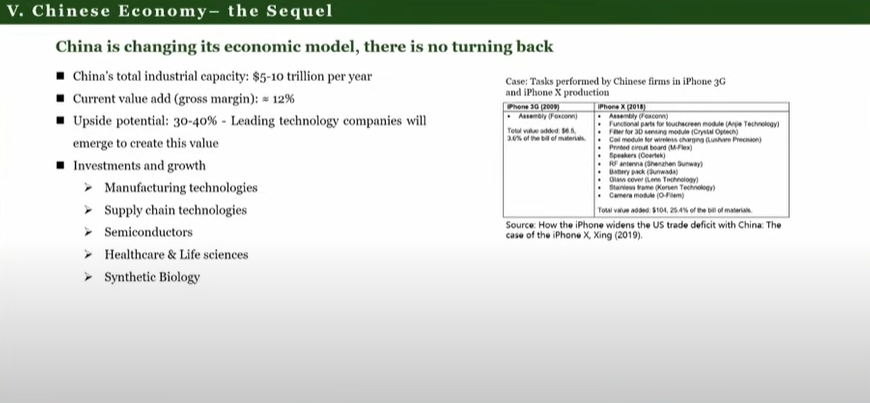 Why? Because China capturing more value-add (China currently captures 12% and sees the upside potential at 30-40%) means they'll take it from the US & its allies' companies.