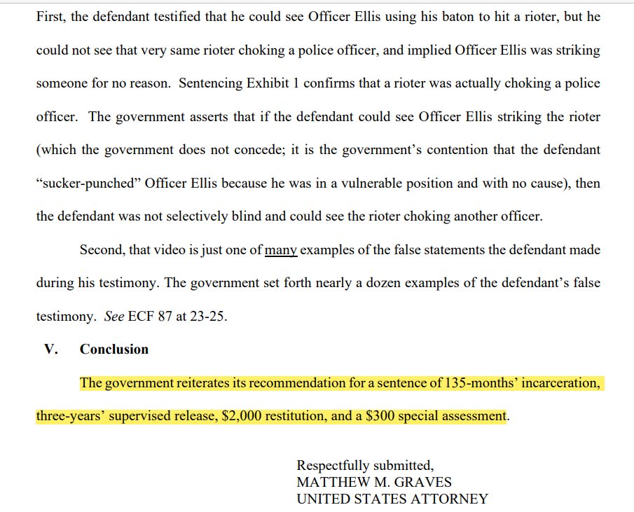 A day after a criminal in DC killed one man and critically injured another, Matthew Graves' office was in court arguing that a J6er who shoved a Capitol police officer should go to prison for 11 years.