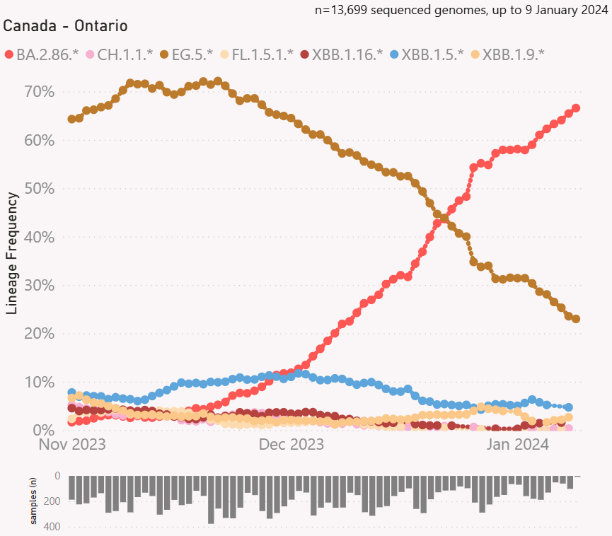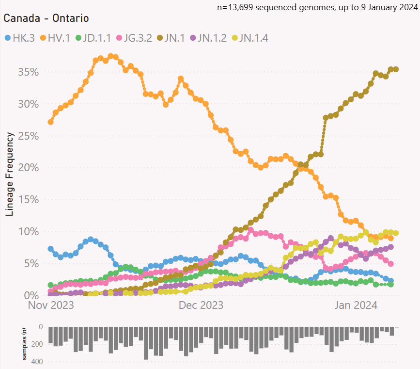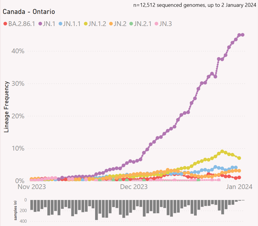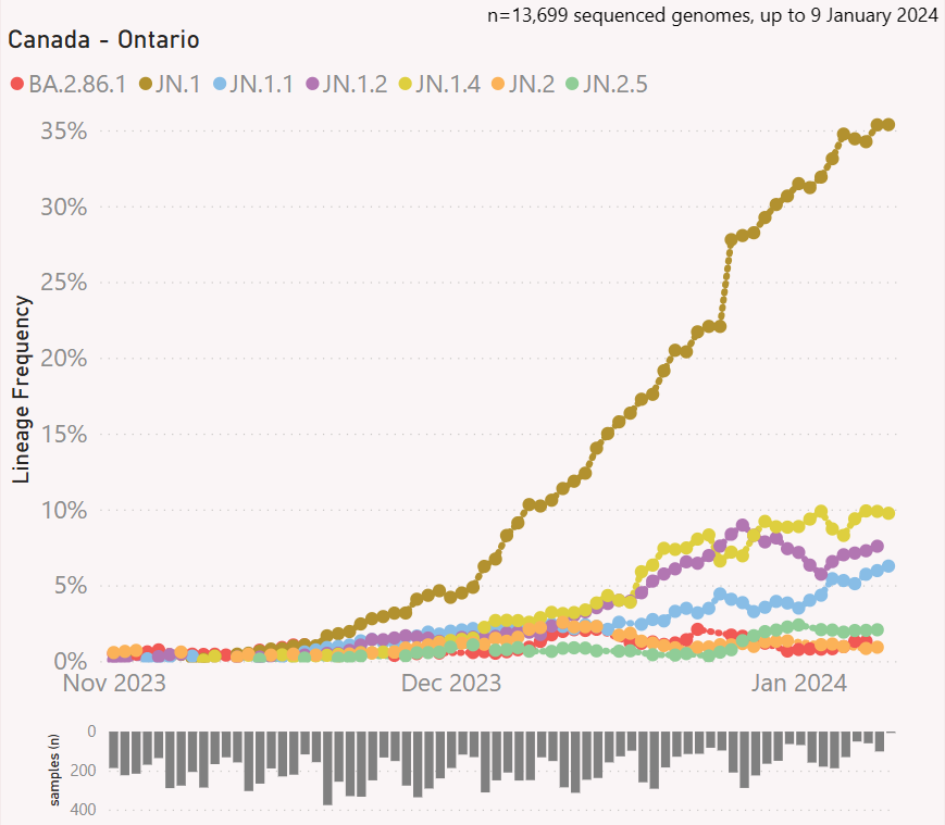 #Variant update for #Ontario, #Canada (to Jan. 9, 2024)