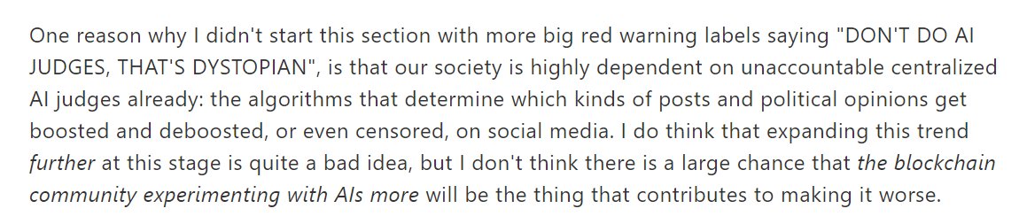 In his post, @VitalikButerin writes: "DON'T DO AI JUDGES, THAT'S DYSTOPIAN".