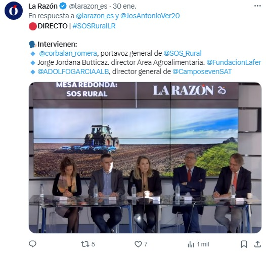 Ayer mismo La Razón organizó una mesa redonda con la CEO de la Fundación Ingenio y su presidente Adolfo García Albaladejo, con el nombre SOS Rural.