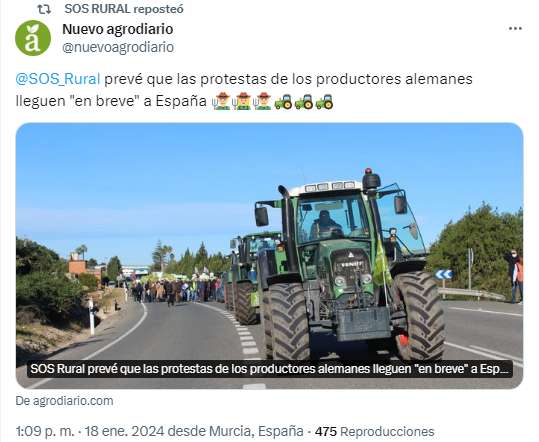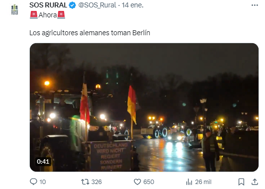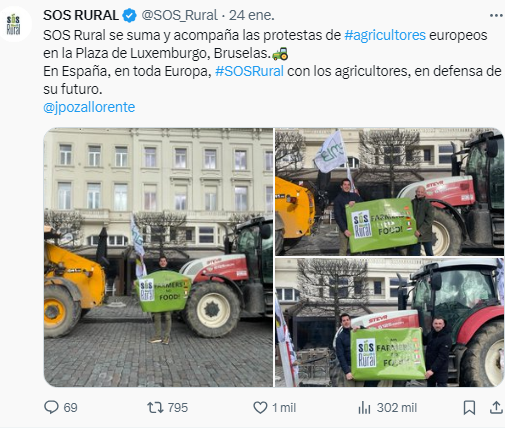 Llevo varios días viendo esta publicidad pagada de SOS Rural, los mismos que organizaron una mani contra el gobierno llena de conspiranoicos liderados por un franquista de VOX.