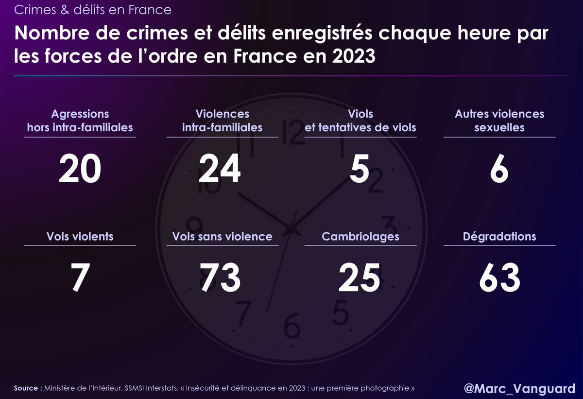🔴 Le bilan 2023 des crimes et délits est mauvais, avec une augmentation enregistrée pour la plupart des infractions.