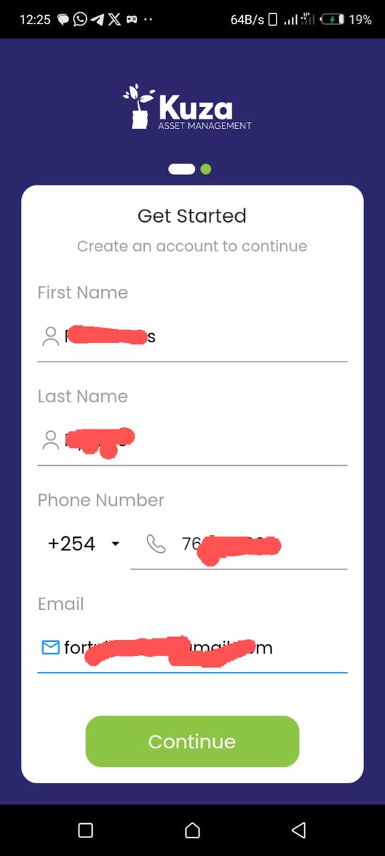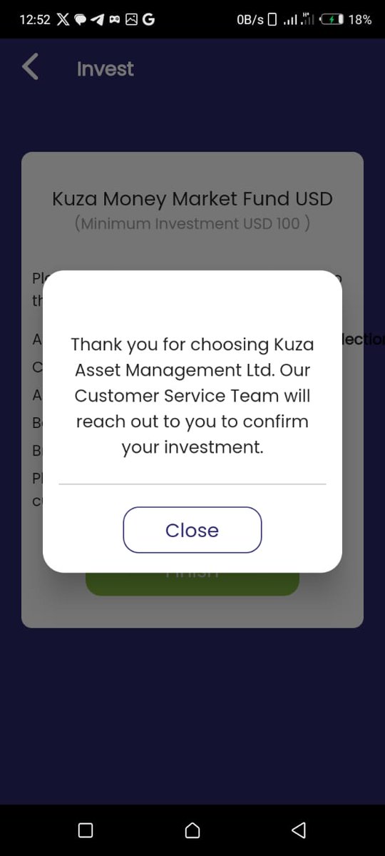 Next, you will choose the area where you want to invest your funds. Select the "Kuza Money Market Fund (USD)" option