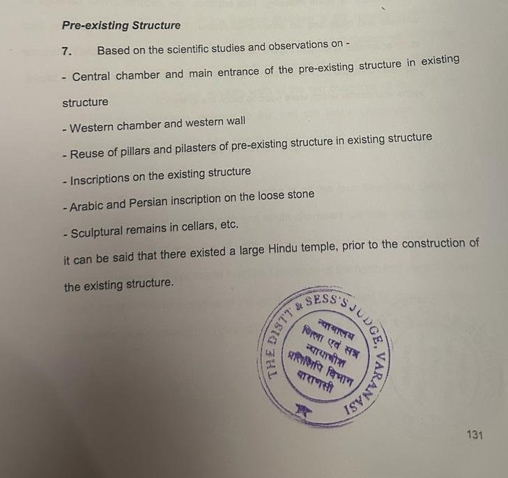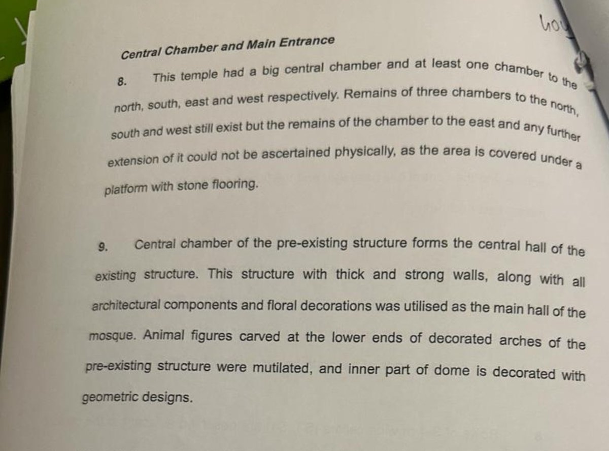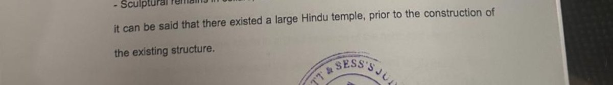 ASI Report Concluded That "Based on scientific studies/ survey carried out, study of architectural remains. exposed features and artefacts, inscriptions, art & sculptures, it can be said that there existed a Hindu temple prior to the construction of the existing structure."