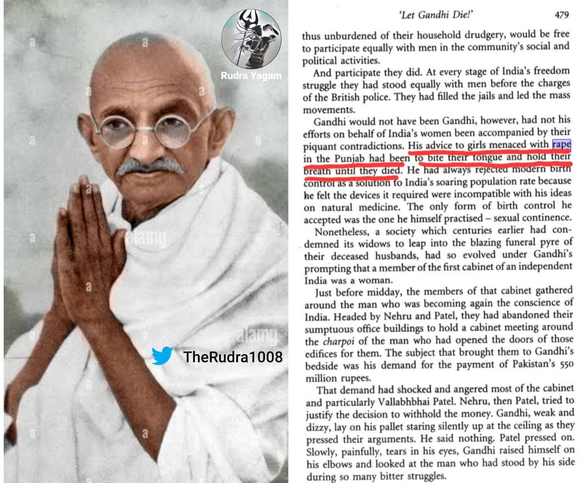 His ( M K Gandhi ) Advice to Girls Menaced With Rape in The Punjab had been to Bite Their Tongue & Hold Their Breath Until They Die ๐ข