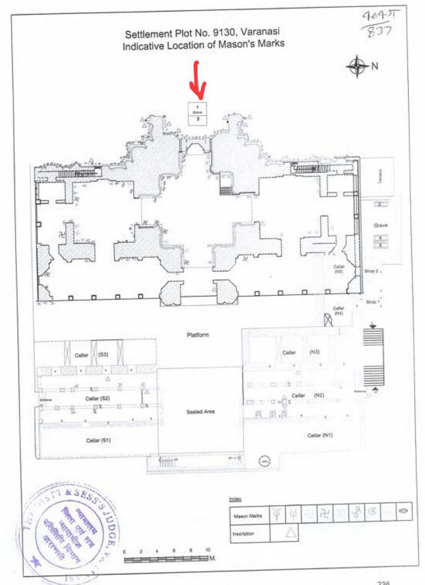 As per old revenue records, the 'Khasra' of Mauza Shahr Khas, Pargana Dehat Amanat, District Benares Settlement Plot No. 9130 included 'Pacca' Juma mosque with a 'pucca' courtyard at the back thereof; one 'pucca' platform & one graveyard compound towards the north;
