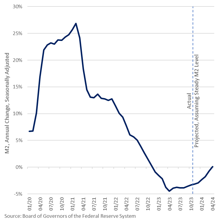 After 6 more months of this holding pattern, the annual change in M2 will be back to zero, and that's assuming the Fed actually stays the course and doesn't yield to political pressure and get us there even faster...