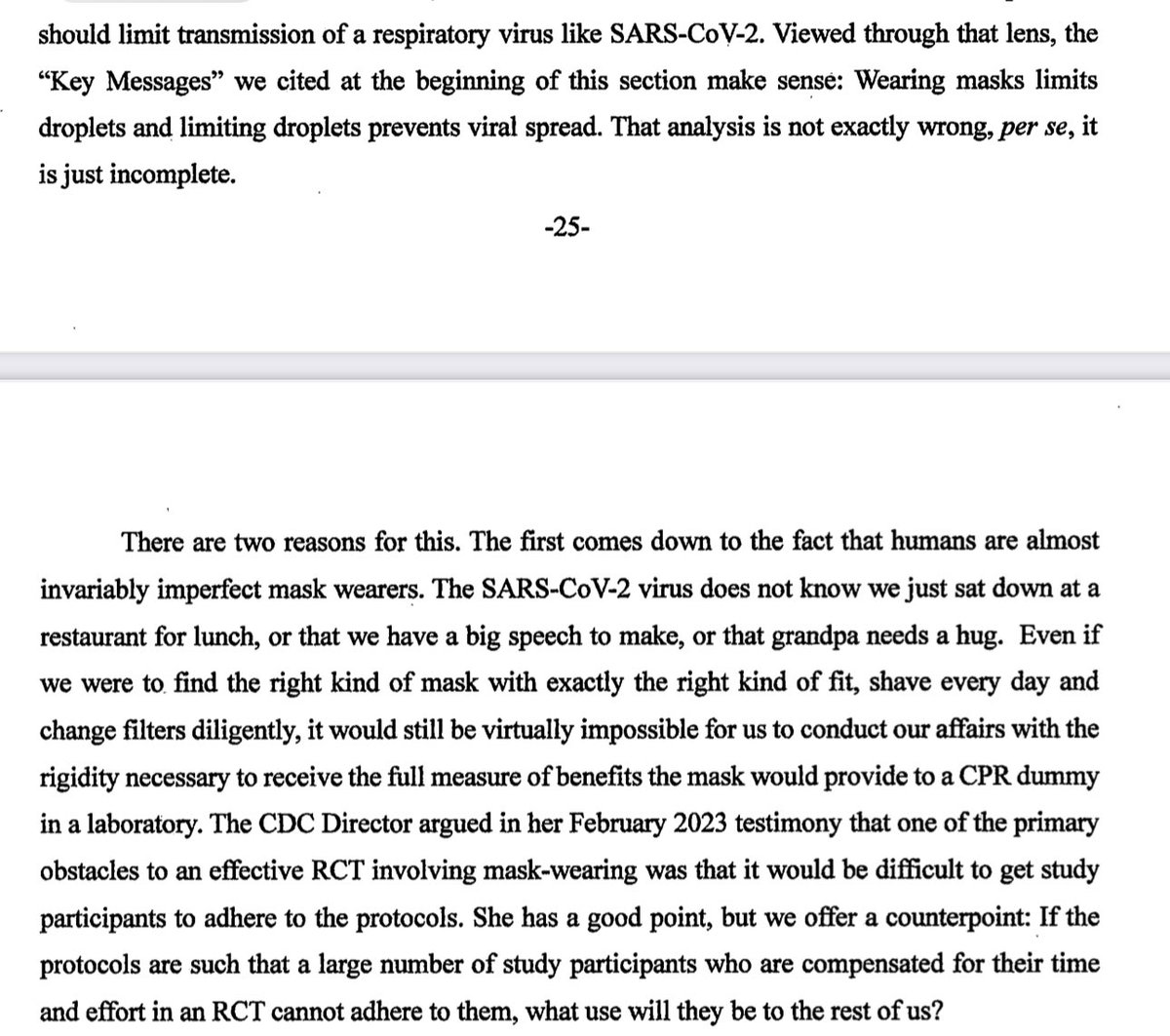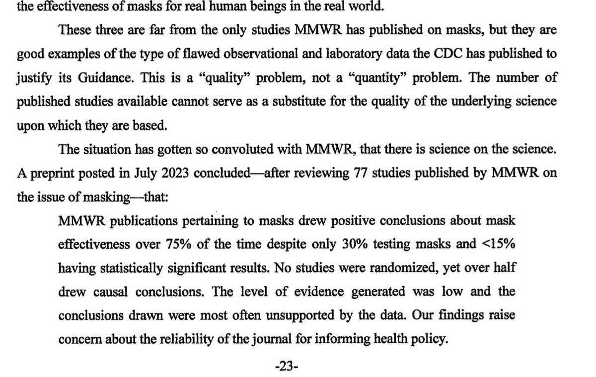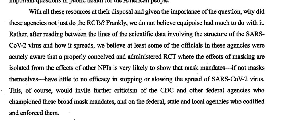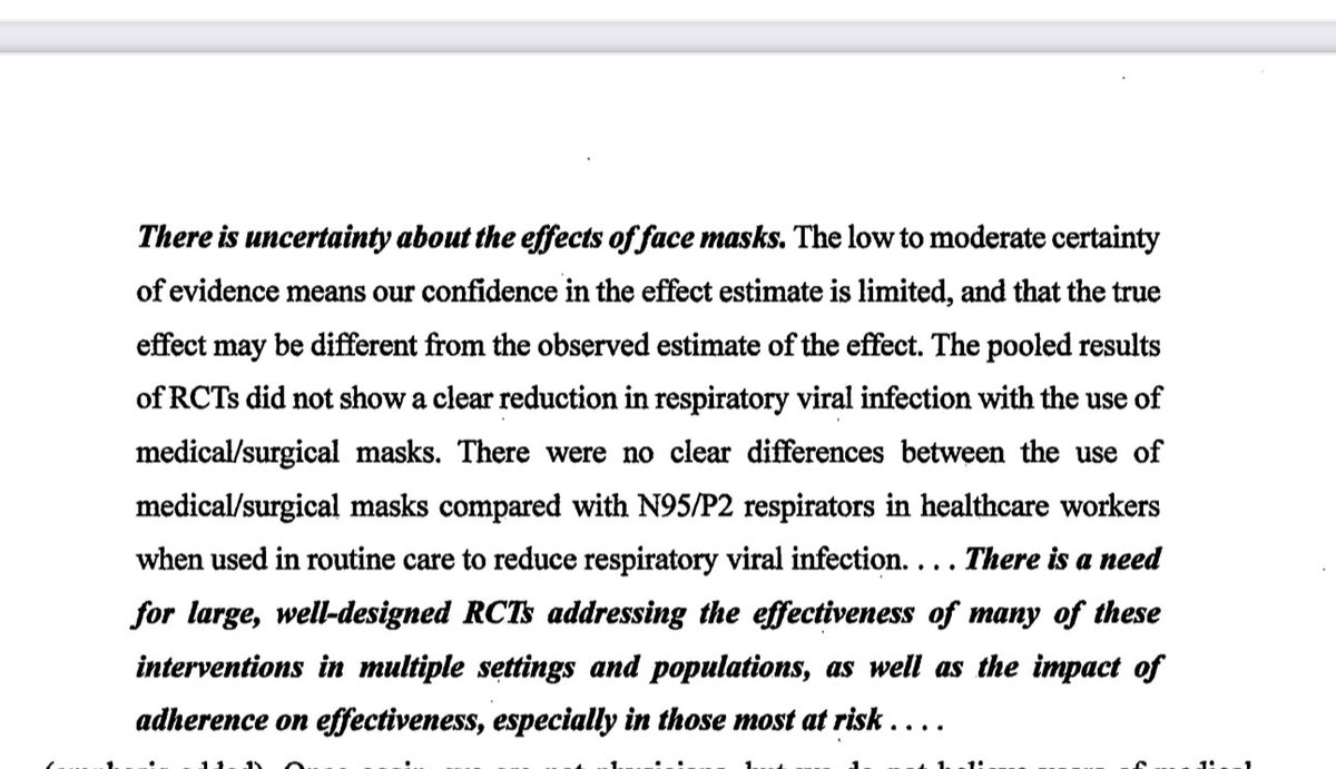 There should’ve been an RCT on the efficacy of masks - but the CDC said no one thought to run one. So the GJ cites a meta analysis by Cochrane.