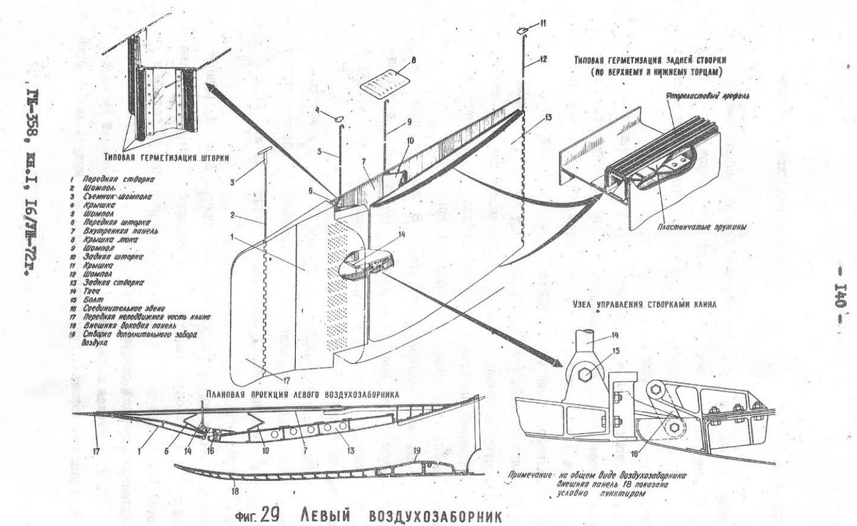 ...open to allow more air when necessary. The main by-pass flow is provided by wire mesh windows with plate valves around the engine compressor intake (1 on the figure).