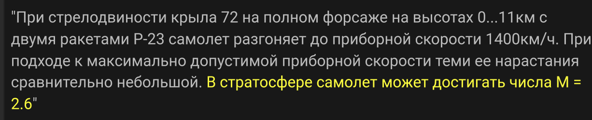 The Soviets did indeed achieve their goal of making the MiG-23 capable of very high Mach. The MiG-23ML flight manual states at page 189 that a Mach number of 2.6 is achievable while armed with two R-23 missiles and the wings set at 72° sweep angle, in the stratosphere.