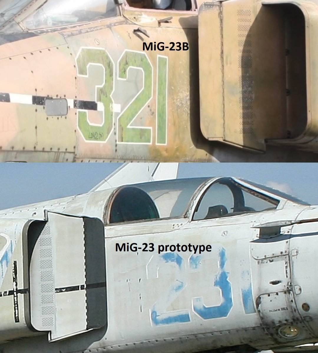 Whenever somebody brings up the MiG-23 intakes, there is always that person who just has to say "yeah, it's just a copy of the F-4 Phantom intakes, they even copied the number of boundary-layer bleed holes and those struts that are meant to cut the...