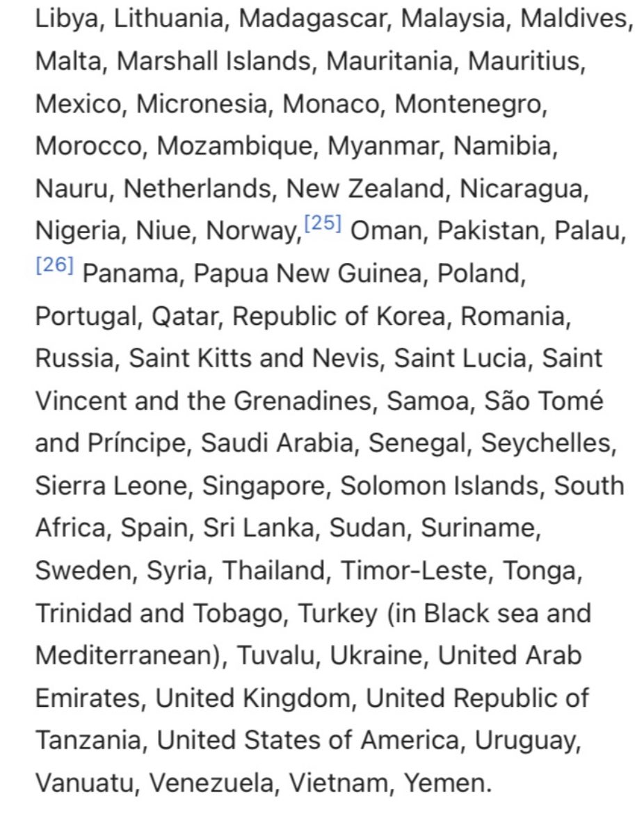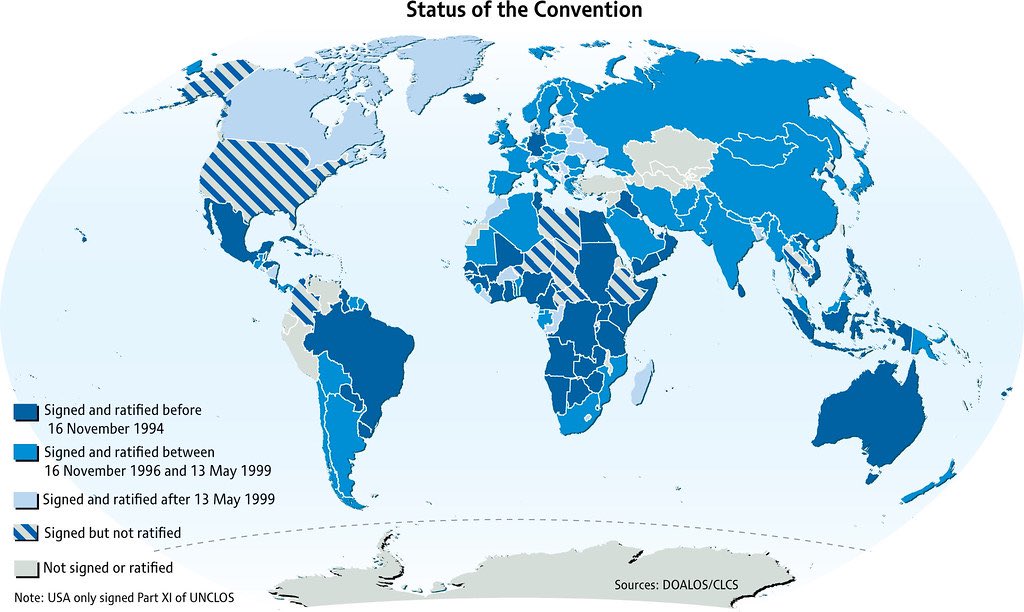 UNCLOS has been signed by 167 states & the EU. Non-signatories are still bound by many of the provisions of UNCLOS, as they are now generally accepted as reflecting customary international law, to which all states must adhere. Image