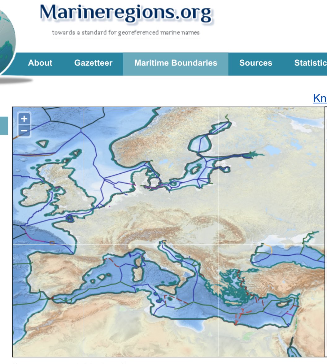 land. That was linked to the distance of a cannon shot fired from shore. This was considered to be about 3nm. Image