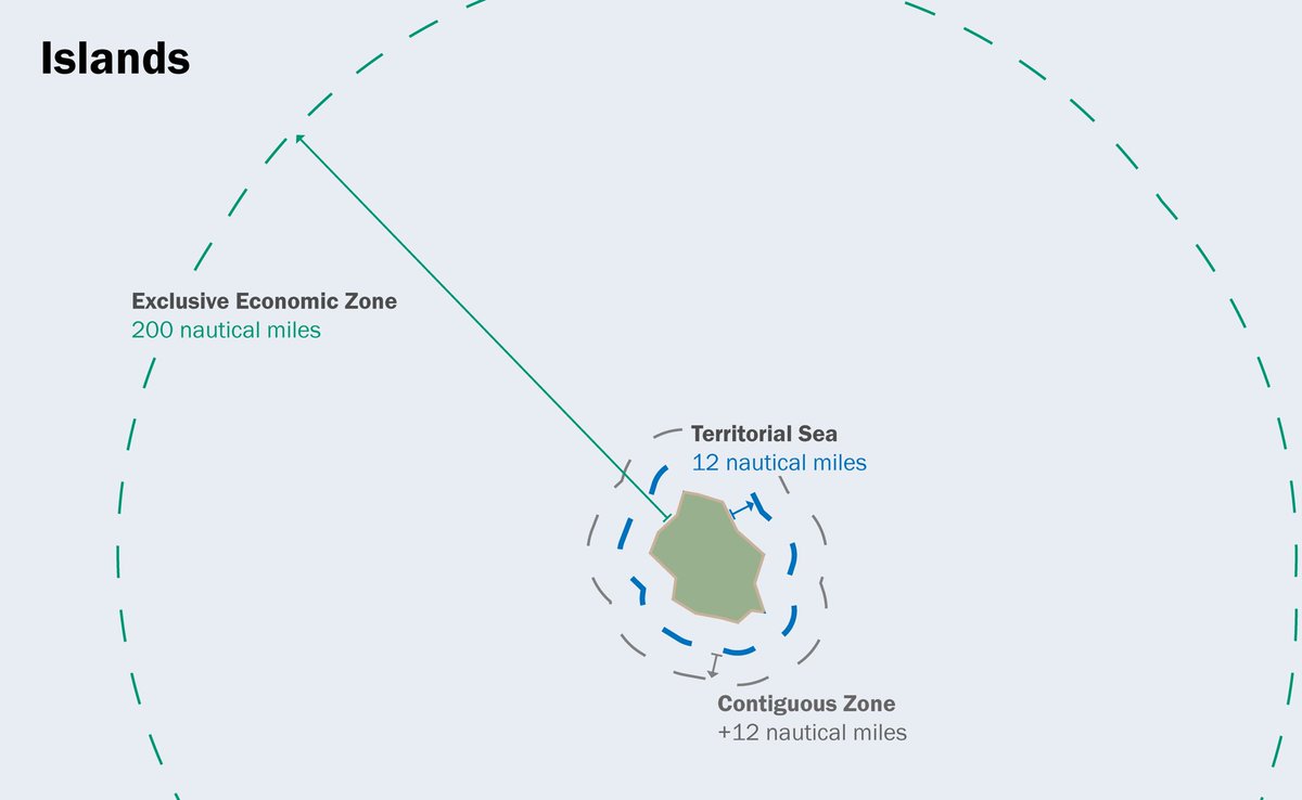 According to UN’s Law of the Sea, all islands & rocks, however small/ insignificant, can generate a territorial sea of 12nm from their baselines. This general rule is customary law and is binding. Image