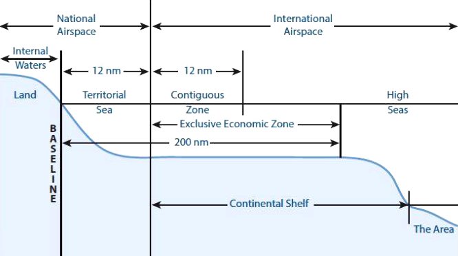 With the negotiation of the 1982 UN’s Law of the Sea Convention, the allowed breadth of a territorial sea claim was extended to 12nm. UNCLOS is the only international agreement that defines the rights & responsibilities of nations with respect to their use of the world’s oceans. Image