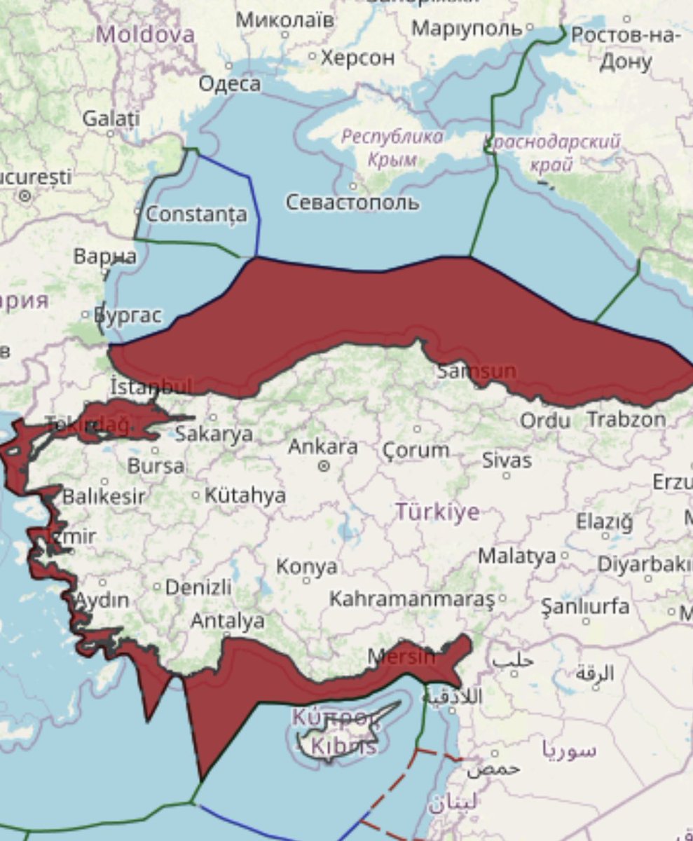 Turkey itself has extended its territorial waters to 12nm in the Black Sea and the Mediterranean already since 1964. Image