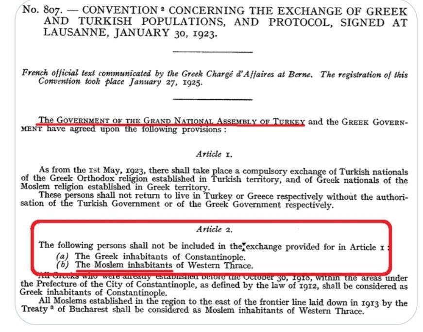 As part of the agreement, the Muslim minority living in Western Thrace-roughly equivalent numerically-was also excluded.