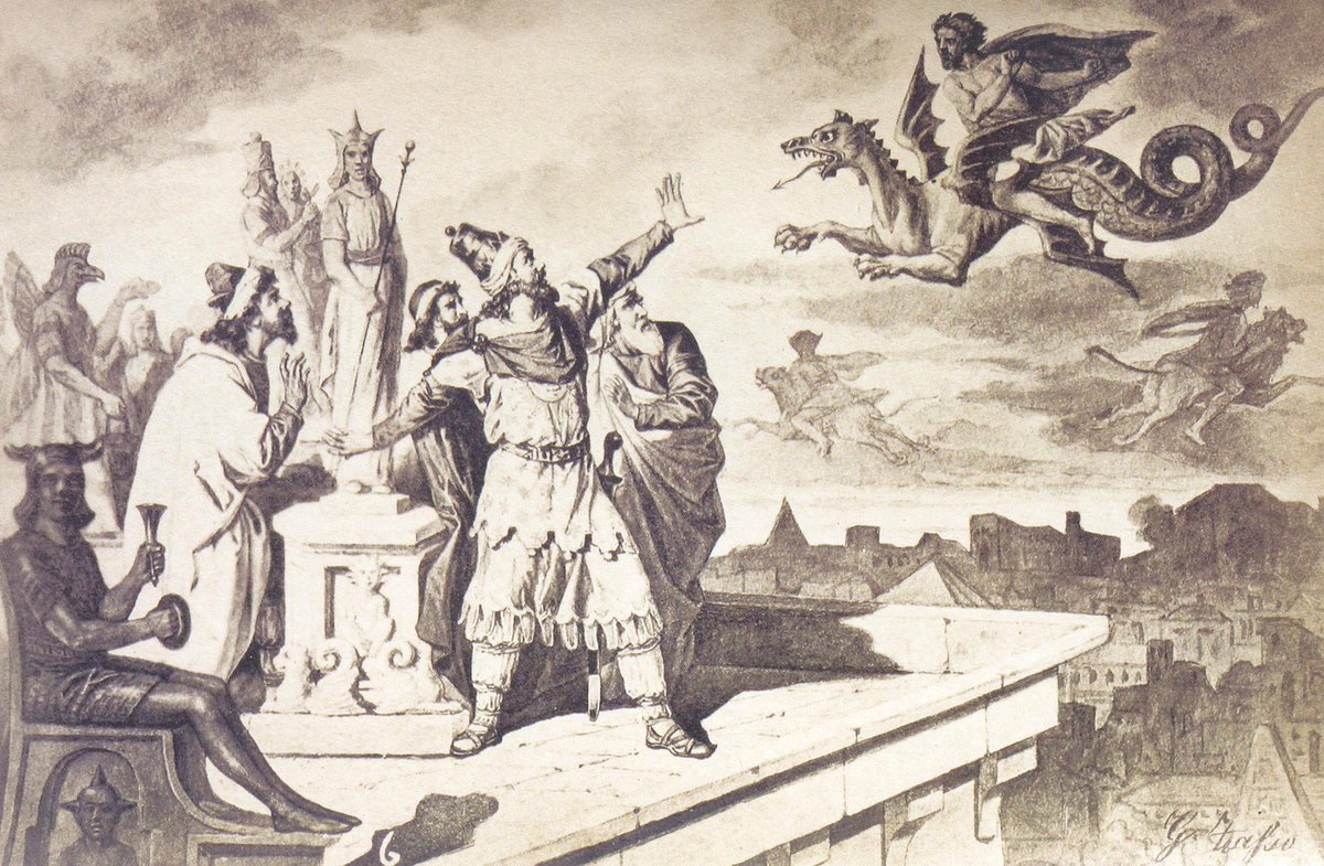 But his is a tragic story. In the primal myth, he is remembered by the Iranians as a tyrant and serpent, by the Slavs as a hero.