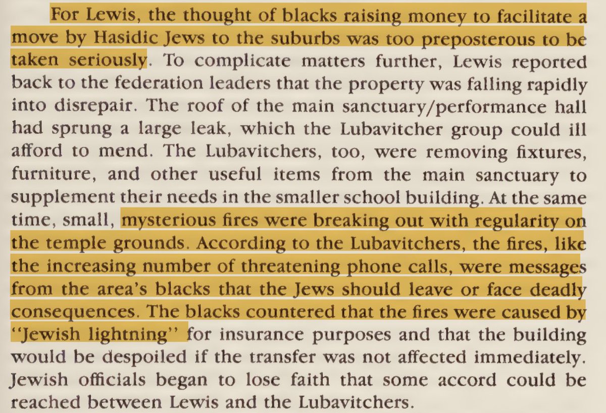 While the Lubavitchers lacked enough funds to move, or even to properly maintain the temple, tensions continued to rise. As they were being pressured by the Lewis and Black community - by a strange coincidence - mysterious fires started to break out in the complex.