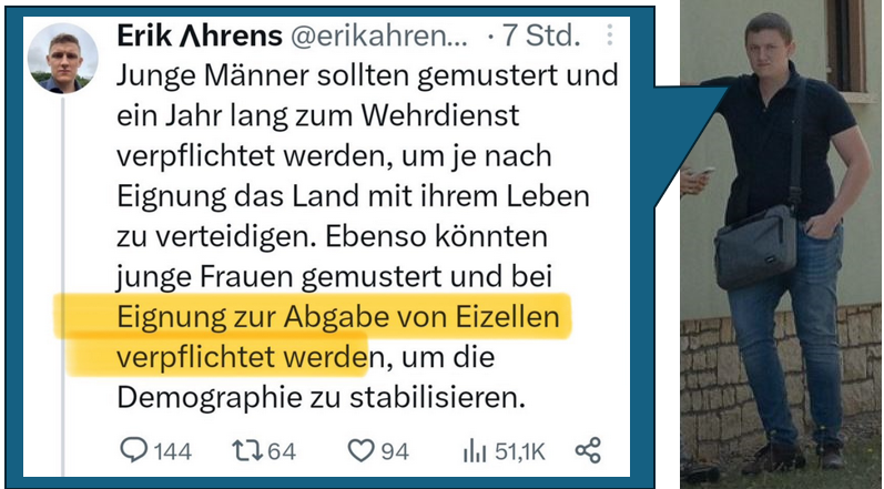 đź§µErik #Ahrens ist Social-Media Berater & Angestellter des #AfD-EU-Spitzenkandidaten Maximilian Krah. Er ist wie Krah und Sellner Teil des neurechten Netzwerks, gibt ehrliche Einblicke in dessen Ideologie und zeichnet ein Bild von einer dystopischen Gesellschaft unter der #AfD.