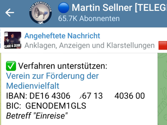 Über Telegram und in seinem Newsletter versucht er aufgrund seiner zahlreichen Kontosperrungen nun über seinen Tarnverein Spenden bei der GLS zu sammeln. Sellner bekam auch vom 51-fachen Mörder und Rechtsterroristen von Christchurch Geld gespendet: belltower.news/christchurch-d…