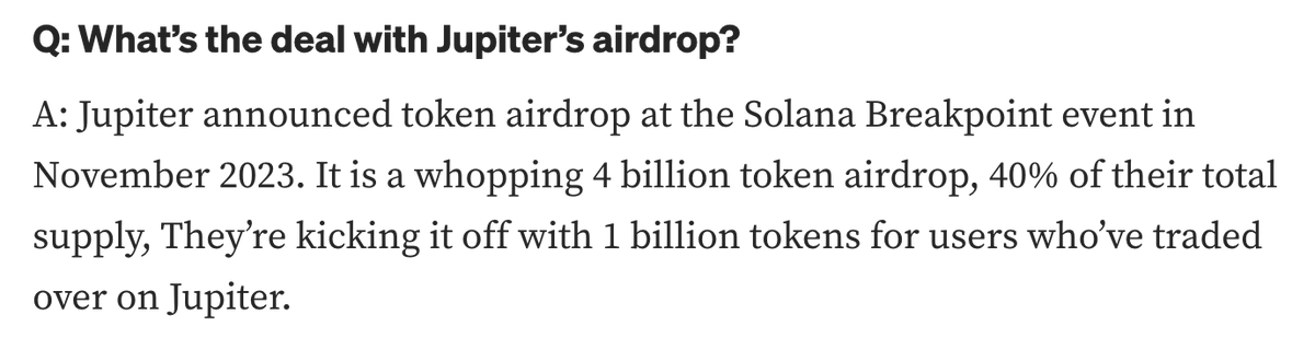 $JUP: airdrop totaling $800k for just using their dApp