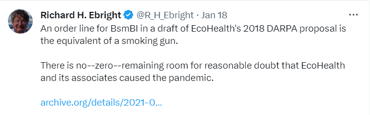 While there is much interaction between these groups and WIV was likely involved in either case, EcoHealth may prove to be a bit player - useful idiots rather than central to the scheme.