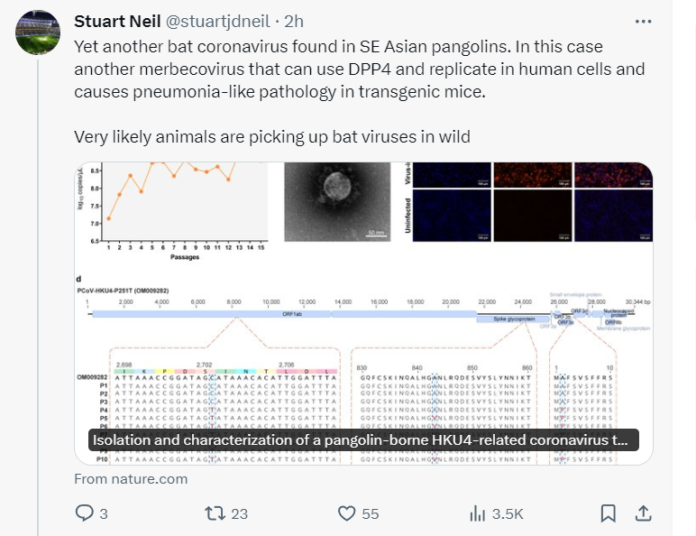 Just a few weeks ago a PLA group announced a dangerous new viral variant *they claim* comes from a pangolin. The senior author is Yigang Tong who was engaged in a secret military project in 2017 when he isolated a pangolin virus with an RBD nearly identical to SARS-CoV-2.