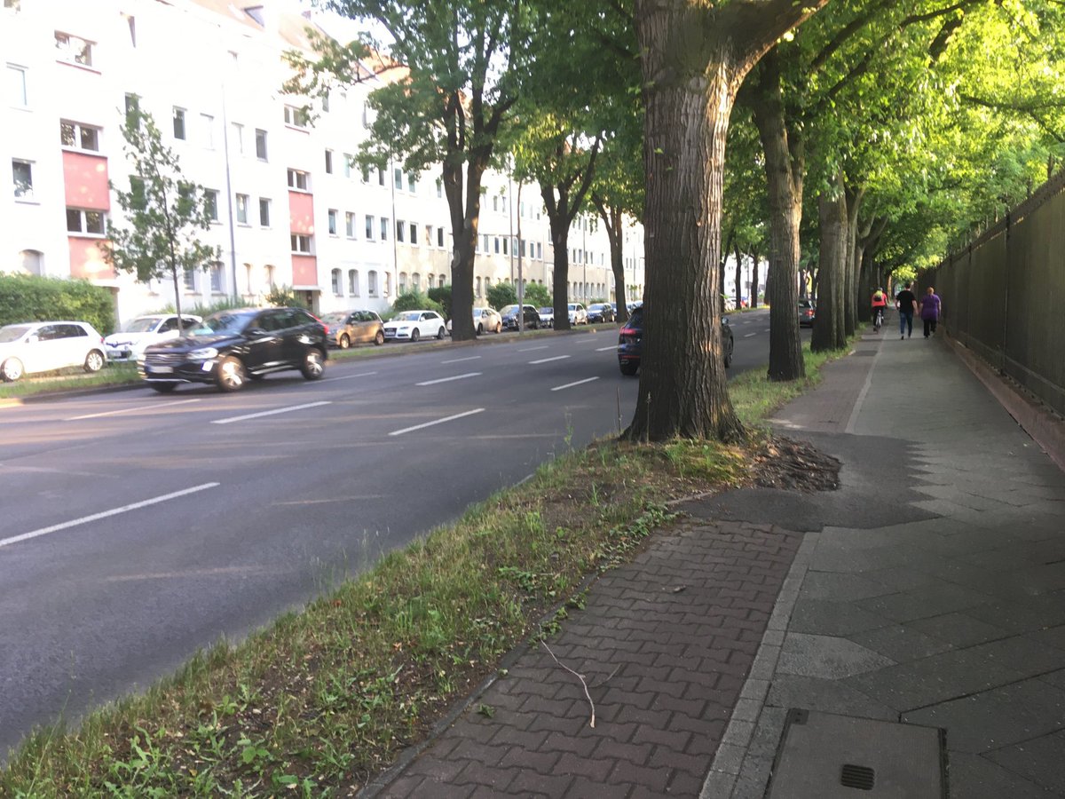 Der alte Radweg war praktisch unbenutzbar und der Gehweg daneben so schmal, dass eine Verlagerung des Radwegs dahin nicht möglich ist. Das Bild spricht für sich…