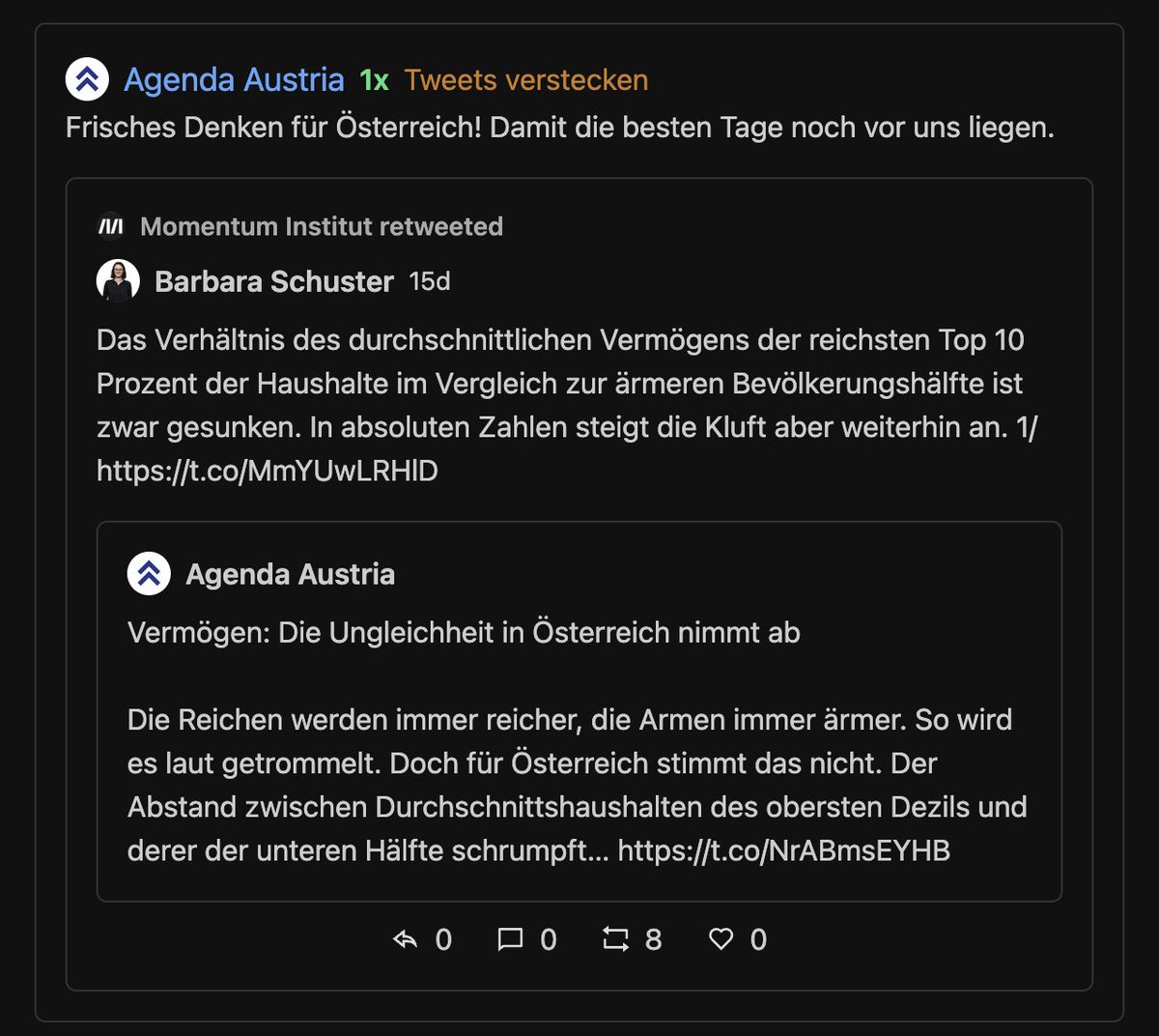 Trotzem die Agenda Austria (AA) ihre 24/7 Öffnungszeiten haben will, ist sie eher eine 9-5 Bude. Nur wenn der Chef im Fernsehen ist, gibts Überstunden.