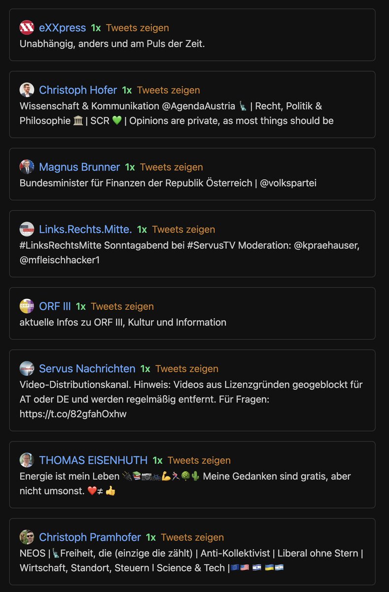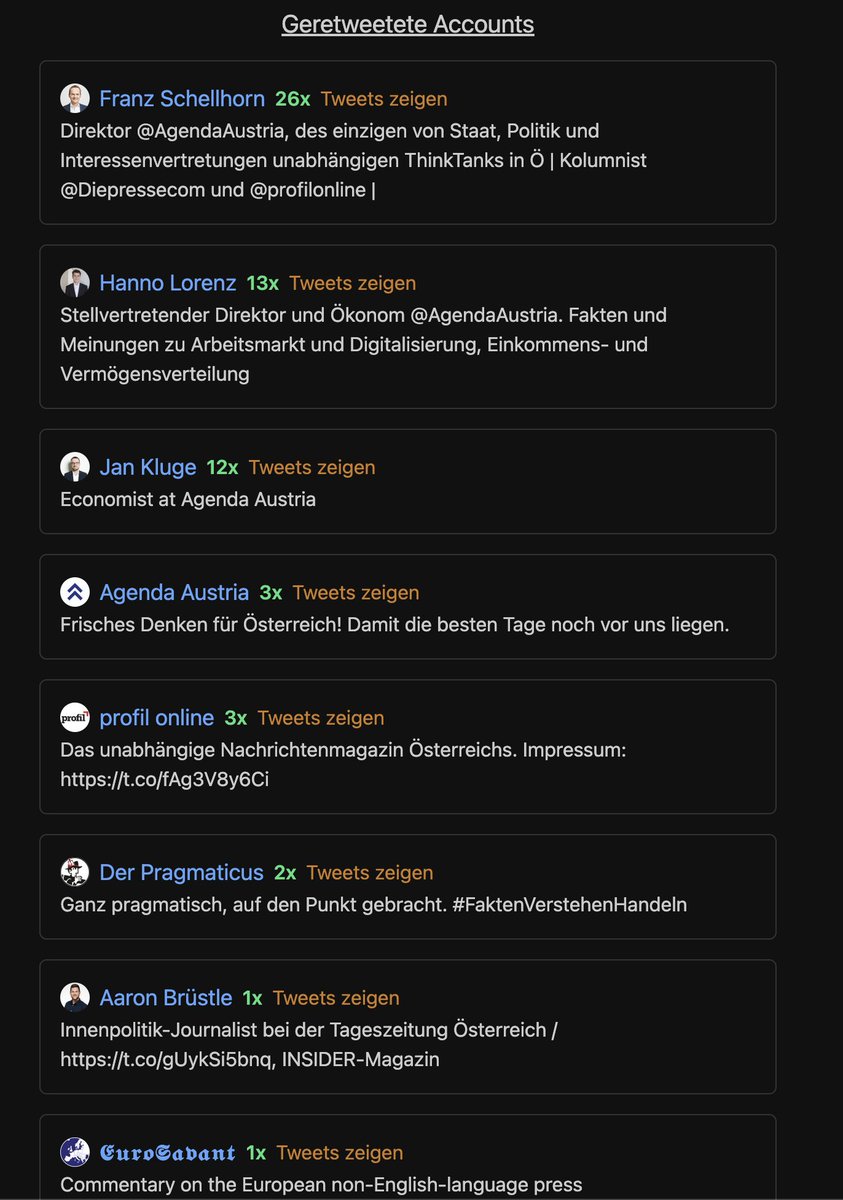 Aber auch der Pragmaticus, eXXpress, und verschiedene Servus TV Outlets werden retweetet.