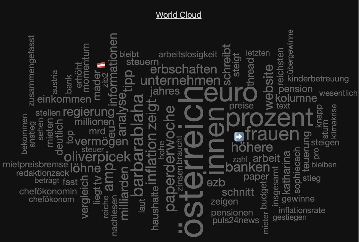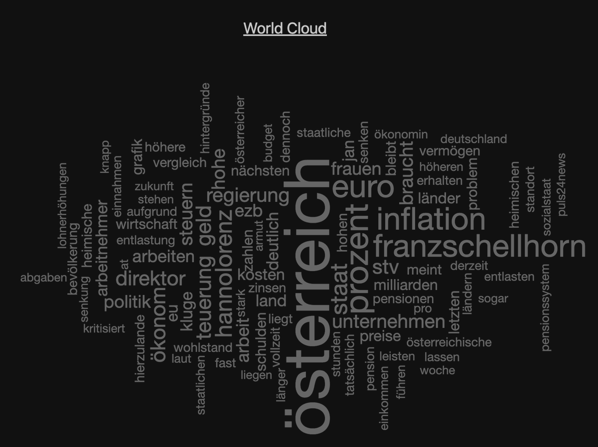 Wie schauen wir thematisch aus? Dafür gibts eine schiache, net besonders gute Word Cloud.