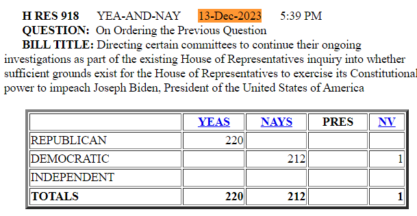 At some point between now and July the Republicans will ~probably~ have the votes to pass this impeachment resolution. But the whole thing is just an embarrassment now, and may well be more harmful than helpful for electoral/political purposes. The incompetence is mind-boggling.