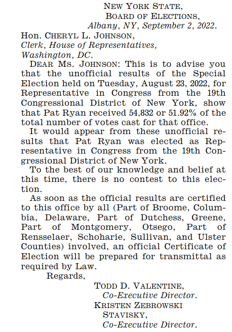 NY-3 is trickier to game out than some are saying. For the purposes of House voting math it's not enough to have Tom Suozzi win the election, you need his win to be communicated by NY election officials to the House Clerk, and he must be sworn in. How long does that take? Well-