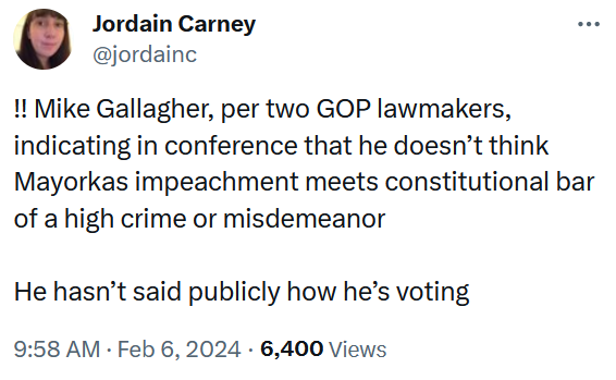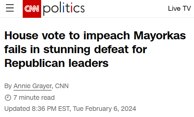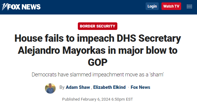Political. Not one House Republican who voted for this believes Secretary Mayorkas will actually be removed from office by the Senate. The impeachment of Sec. Mayorkas is an act of political messaging, it is the entire purpose of the endeavor.