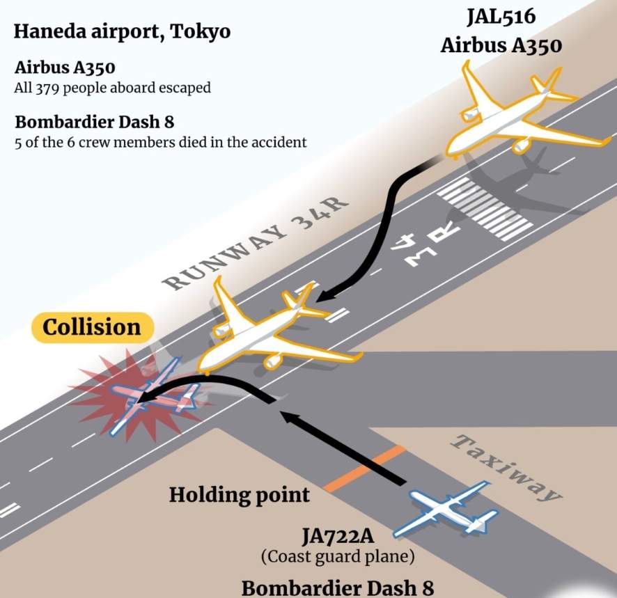 Quando un Airbus A350-900 si è scontrato durante l'atterraggio con un Bombardier Q400 della Guardia costiera giapponese che stava rullando sulla pista, prossimo al decollo.