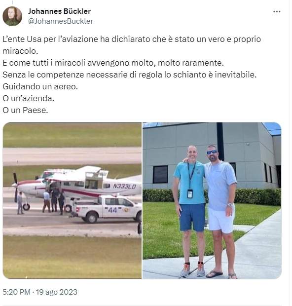 Tempo fa vi ho raccontato la storia di un “miracolo” avvenuto martedì 10 maggio 2022 quando un piccolo aereo Cessna 208 Caravan, dopo un grave malore del pilota, era atterrato grazie al coraggio di un passeggero, Darren Harrison, che non aveva mai pilotato un aereo.