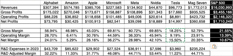 With the addition of Tesla two weeks ago, I own all seven of these stocks, but the other six have been in my portfolio for much longer. I can live with the mild over valuation in $GOOG, $AAPl, $AMZN & $META, and even the larger over valuation in $MSFT. bit.ly/4bsNEcB