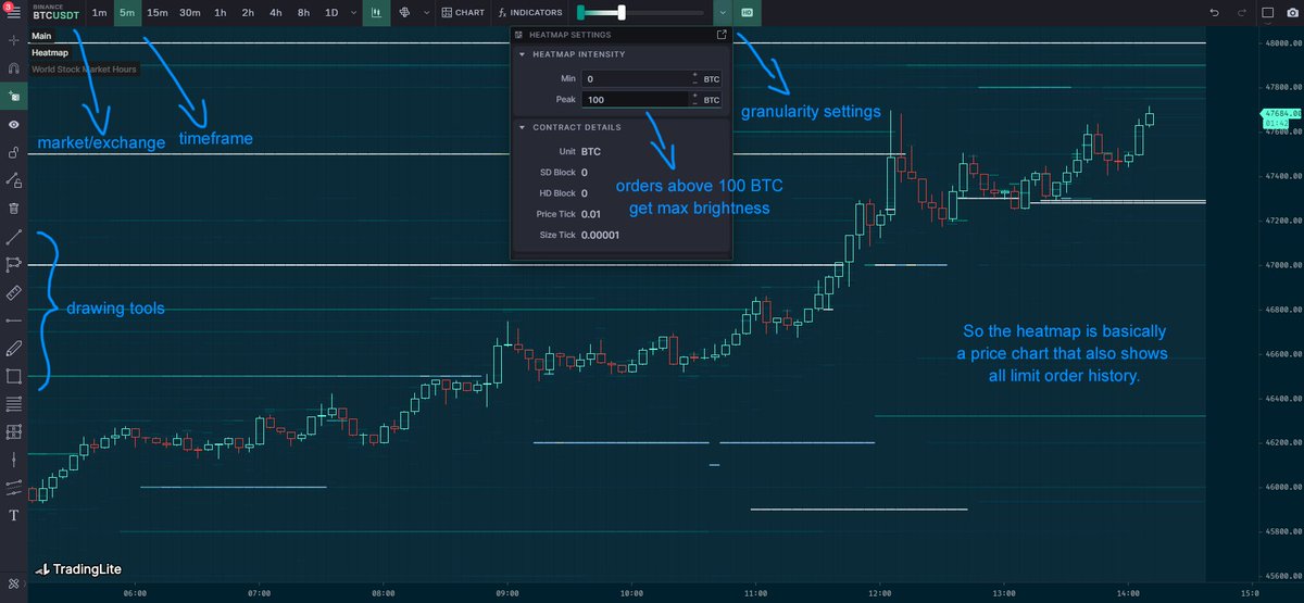 So it's pretty simple: it's a price chart with all of the limit order history slapped on top of it.