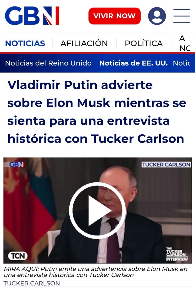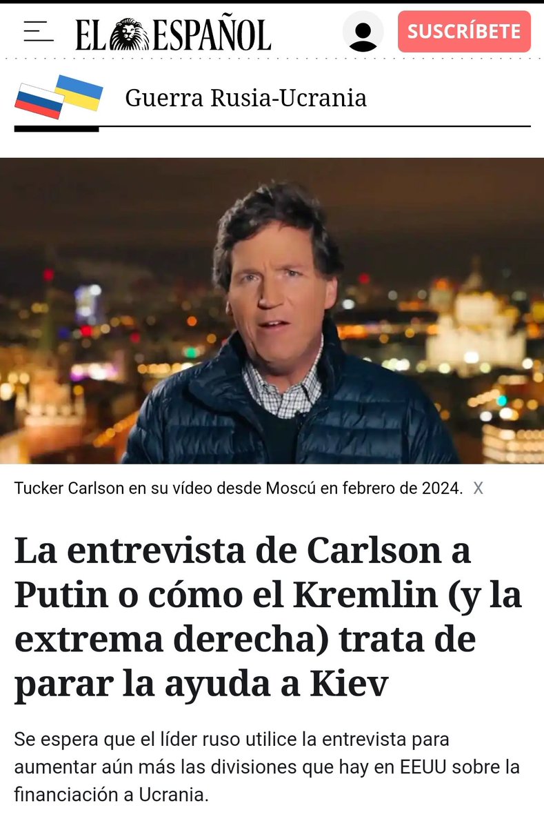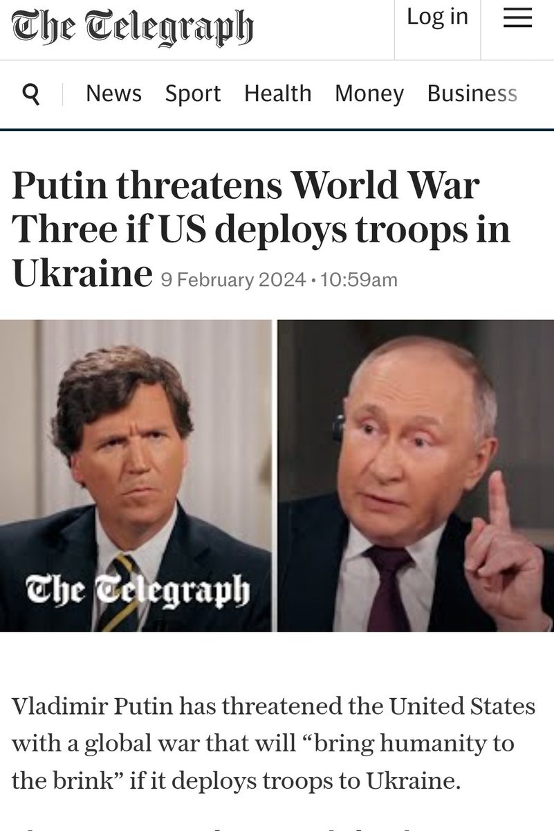 Una de las cabeceras de referencia en N.Zelanda titula: "SERIO CONFLICTO GLOBAL: Putin amenaza a EEUU con una Guerra", en línea con Telegraph. Vean el contexto completo de la pregunta de Carlson y la respuesta del dirigente ruso.⬇️
